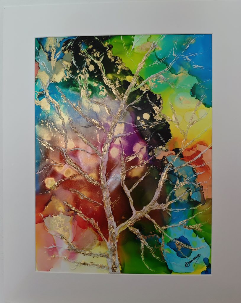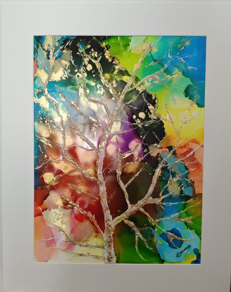 Technique: Inks and acrylic on paper, gold leaf