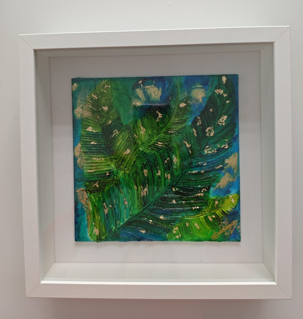 Format: canvas board 20 cm x 20 cm Framed 27 cm x 27 cm